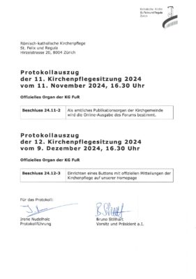 Gottesdienste in den Alterszentren Bullinger und Hardau
